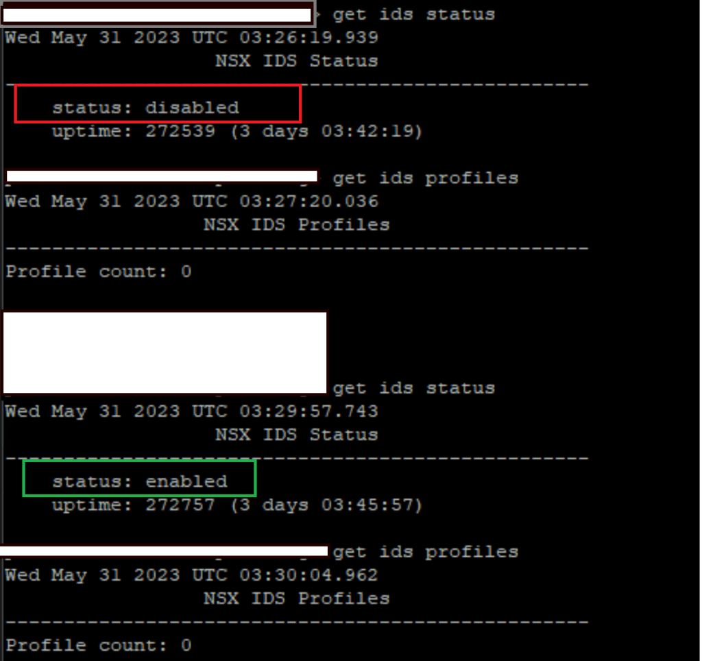 ITGuy: Nice! This is an on-premises installation so you were able to do SSH into the host and run nsxcli commands to get the IDS status but for cloud installation like VMC on AWS or any other cloud you will not have the ability to SSH into the host and you have to rely on the functionality testing only. Just a note for future endeavors!