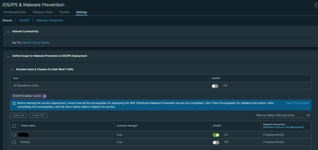 CuriousTechie: I have two clusters in the environment, and I need to run IDPS on only one of them thus I have enabled the IDPS on one cluster only as below.