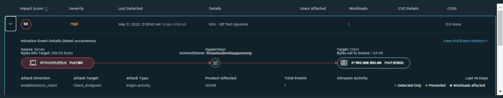 ITGuy: Let’s check few details of these events, you can see the Source/Destination IP’s, Port, ESXi host, Direction/Target/Type of the Attack.
