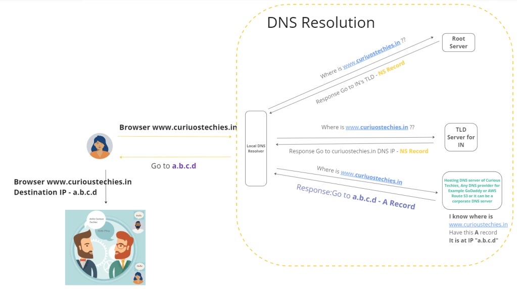 ITGuy: Sure! Let’s see what happens when you type a URL in your favourite web browser. You input a URL lets say “curioustechies.in”and DNS does its magic and run multiple DNS queries to find you the IP of the web site/server that you are looking for. I believe you have a fair understanding of how DNS works so will not go much deep into it. OK?