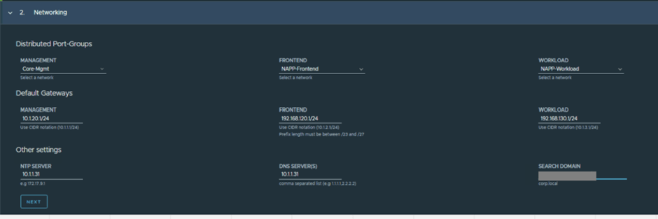 - – >Service and Messaging: NSX will connect to these NAPP services using FQDNs so make sure to get the DNS name resolution in place beforehand. Wizard will show the exact IP for each service, and you can enter FQDN accordingly.