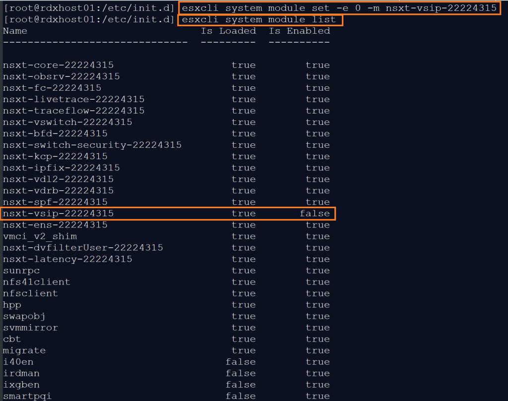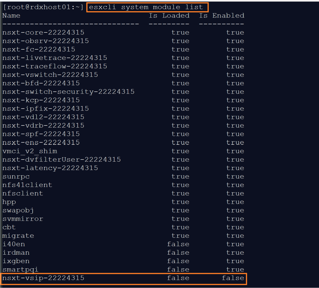 - Verify the VSIP kernel module is loaded and running on the host