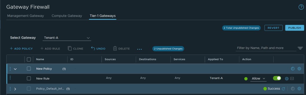 ITGuy: Cool! Just to keep in mind the same logic also applies to NAT rules on Customer created Tier-1 Gateways.