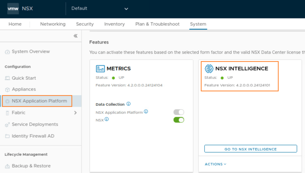You can enable NSX intelligence if you have NAPP(NSX Application Platform) running.