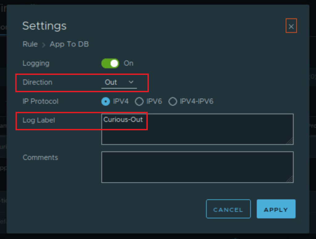 ITGuy: If you change the same rule direction to OUT, you will see the packet coming OUT from App VM via rule 8168. However, it will never even hit the rule at the DB VM because the direction will not match. For a packet to be inspected by a firewall rule all of the below tuples must match.