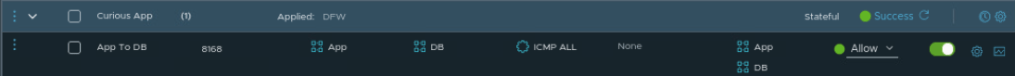 CuriousTechie: That’s simple, I will create a rule with Source:App – Destination:DB – Service:ICMP & AppliedTo:App & DB