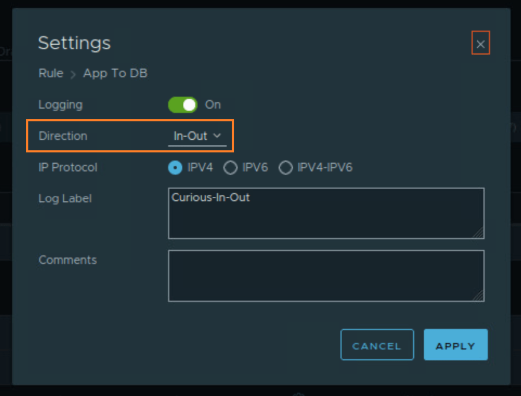 ITGuy: Yes! In normal implementations it is BEST to keep it at default In-Out. Changing the direction is very specific to extreme performance applications. These scenarios require inspecting the traffic in a single direction. This approach saves few micro/nano seconds in latency. NOTE: DFW works in the Kernel at line rate. This means latency introduction is almost negligible. It doesn’t matter in 99% of applications.